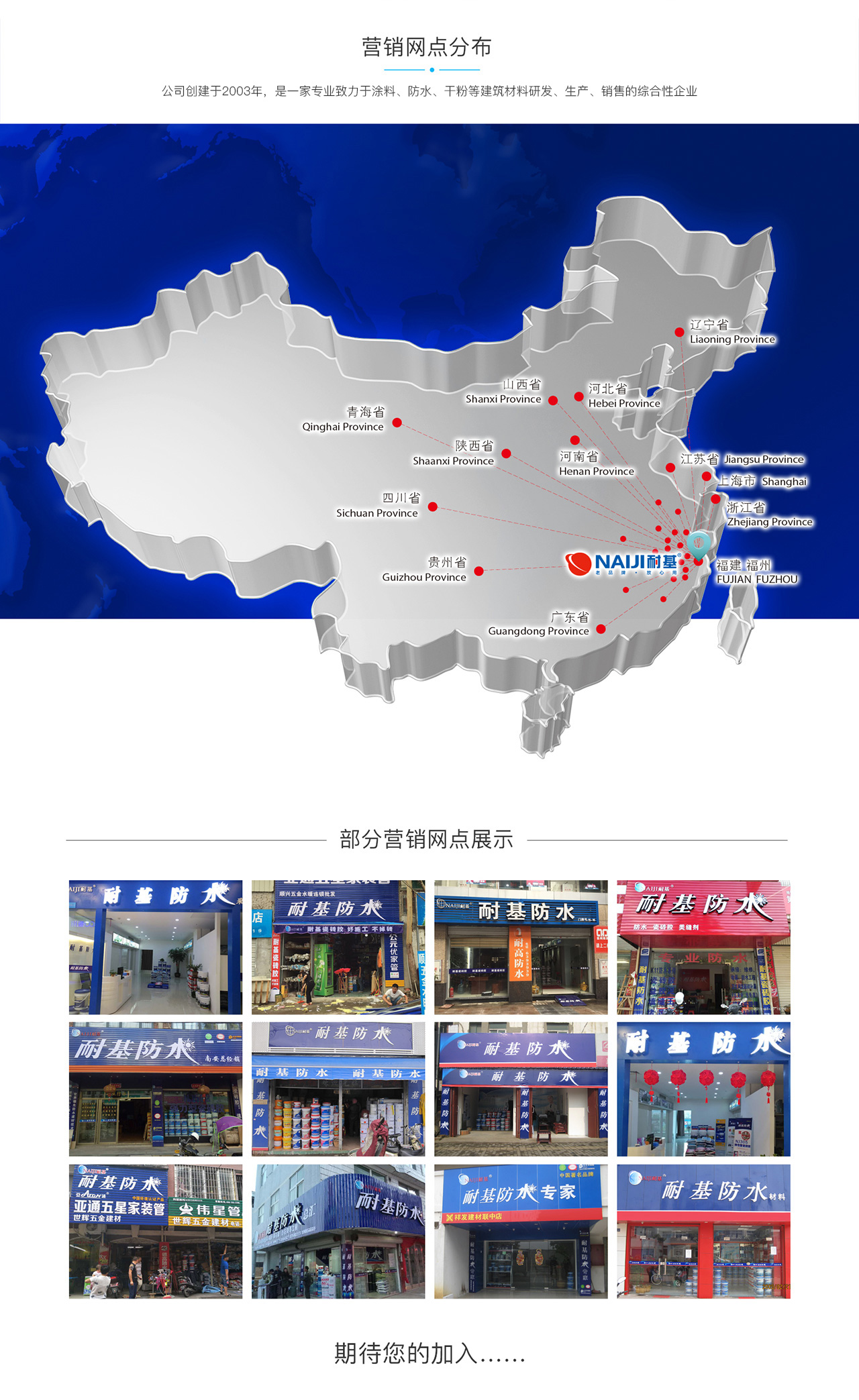 福州耐基建材貿(mào)易有限公司,是一家專(zhuān)業(yè)致力于涂料、防水、干粉等建筑材料研發(fā)、生產(chǎn)、銷(xiāo)售的綜合性企業(yè)。引進(jìn)歐洲先進(jìn)技術(shù)及自動(dòng)化生產(chǎn)系統(tǒng),為防水建材領(lǐng)域的先驅(qū)之一,經(jīng)過(guò)多年發(fā)展,一直秉承以質(zhì)量求生存,以產(chǎn)品開(kāi)發(fā)求發(fā)展的原則,與國(guó)際權(quán)威科研機(jī)構(gòu)聯(lián)手合作開(kāi)發(fā)新工藝和新產(chǎn)品,努力實(shí)現(xiàn)人類(lèi)一小步,科技一大步,為未來(lái)人們的生產(chǎn)和生活作出有益的貢獻(xiàn)。